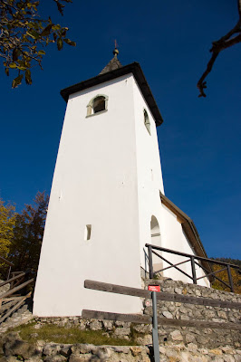 Potem sva se zadovoljila z enim malo manjšim hribčkom nad Preddvorom. Gor je planinska postojanka in mala cerkvica, mislim, da Jakob. Tja pelje skoraj toliko potk kot na Šmarno goro. Je pa povsod polno markacij, ne moreš se zgubiti.
